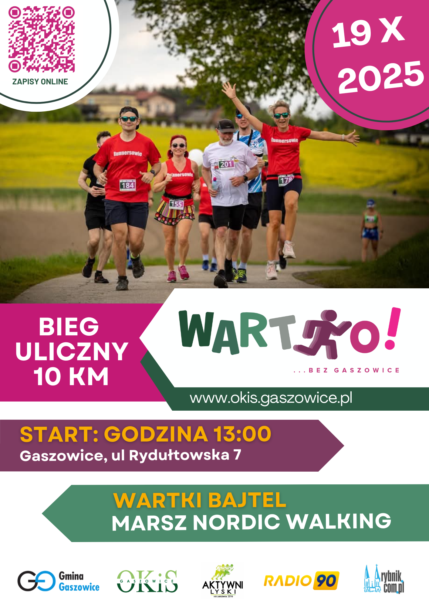 OKiS Gaszowice serdecznie zaprasza wszystkich miłośników aktywnego spędzania czasu, do wzięcia udziału w kolejnej edycji biegu WARTKO!... Bez Gaszowice na dystansie 10 km, który odbędzie się w niedzielę 19 października: